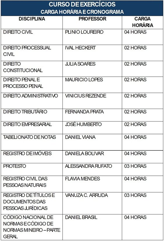 CURSO DE EXERCÍCIOS PARA O CONCURSO EXTRAJUDICIAL DE MINAS GERAIS